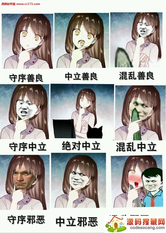 守序中立错乱恶搞表情包是机敏的网民自己制作的恶搞图,我为各位梳理搜集,可是许多小伙伴们却不知这代表什么意思,实际上便是给你喜爱的人区划势力,分成守序中立错乱,赶紧来免费下载瞧瞧吧!