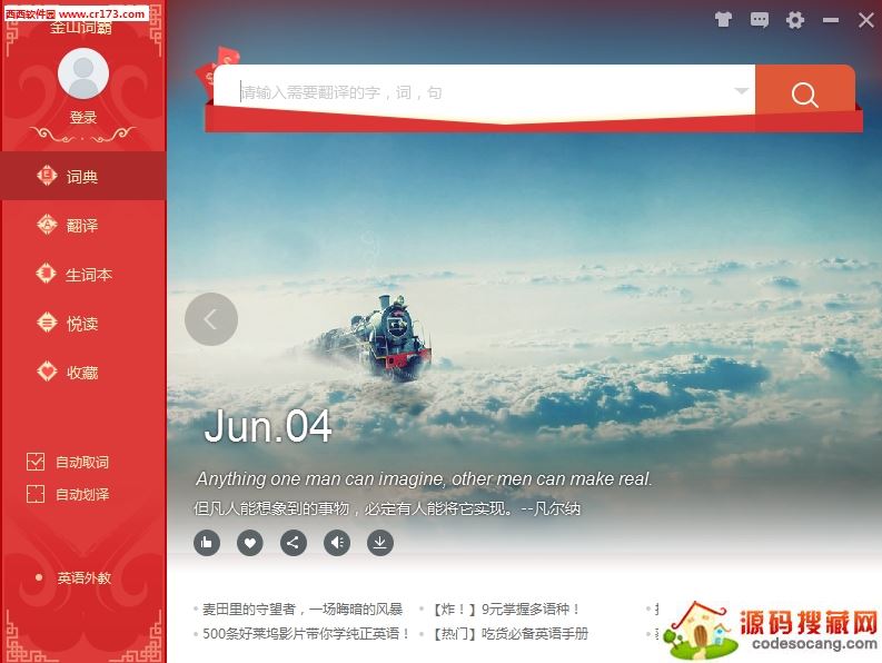 详细收录《科林斯COBUILD高级英汉大词典学习培训词典》、全新升级翻译机器模块、生词本全服务平台同歩、当地词典专业优化、147本技术专业词典再次融合、增加飘浮查单词对话框。