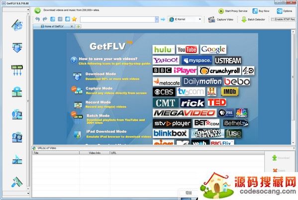 GetFLV-集FLV视频下载、管理方法、变换并播放视频的常用工具合辑,GetFLV内嵌一个浏览器工具,专业用于访问视频网站,当开启一个视频播放地址时,GetFLV会自动识别出视频真正详细地址并提供下载作用,除此之外GetFLV 还适用变换FLV、修补FLV、获取FLV声频等!