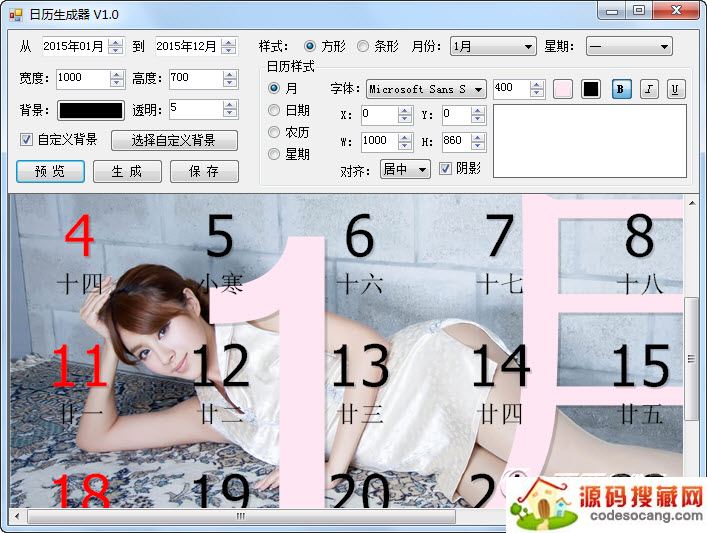 特定事情生成。可生成正方形和条型的日历。储存为PNG格式,适用全透明。