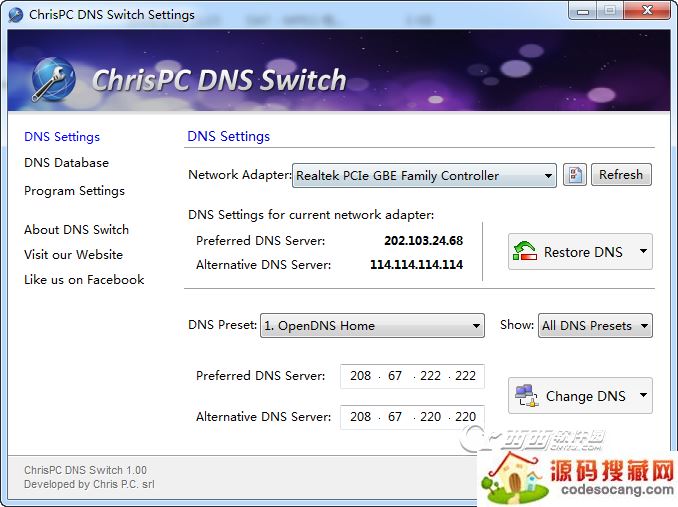 软件Tags: 快速修改切换DNS地址(ChrisPC DNS Switch)