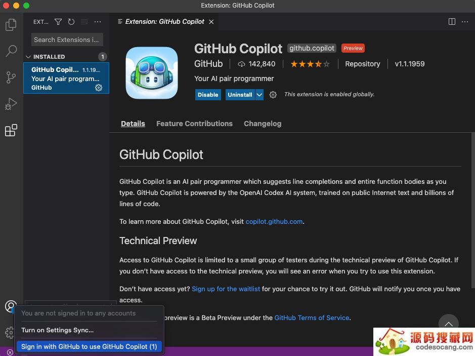 在 VSCode 中授权登录已经拥有 GitHub Copilot 权限的 GitHub 的账号,需要用到 GitHub 账号的原因应该是目前它处于邀请测试阶段,还有代码安全的问题。