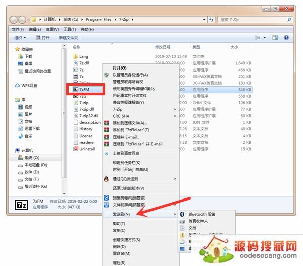 ③选中【7zFM】文件,鼠标右键选择“发送到→桌面快捷方式”即可。