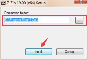 一、在本站下载最新版的7-zip安装包,双击运行,设置好安装目录,点击“install”;