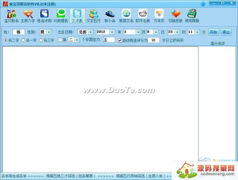 软件全自动智能化起名、无需人工辅助。一键生成98分-100分的最佳名字(让您选到满意为止)