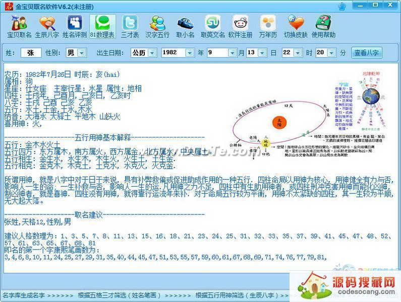 (4)自动分析属性命理 (5)自动采用字义美好的汉字 (6)自动做到五格三才的完美配置