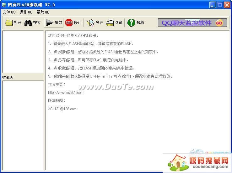 目前绝大多数的网站,仅提供FLASH播放,而不能下载,对于一些自已喜爱的精美FLASH歌曲或游戏,无法做到保存,《网页FALSH抓取器》能非常方便的抓取网页中的FLASH,只要一个FLASH曾在IE浏览器中播放过,它就能保存下来,并且具有FLASH收藏管理功能,同时还是一个非常小巧的FLASH播放器。本软件操作十分简单,绿色软件,不需安装,下载后即可直接运行。