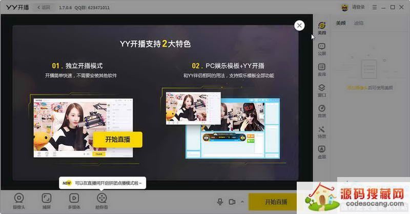 YY开播是YY推出的直播伴侣软件,娱乐/游戏开播,只要使用YY开播助手就能轻松搞定,不管你是娱乐直播还是游戏直播都能用YY开播,同时支持第三方设备调用YY开播作为摄像头!