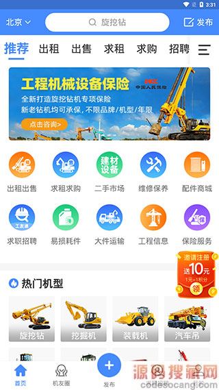 1、进入软件【首页】之后,我们可以看到一些常用的功能,如出租、出售、求租、求购等。