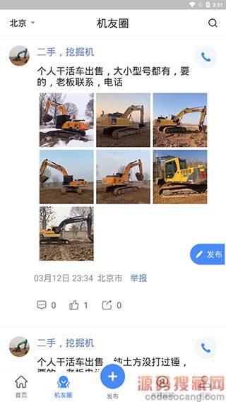 2、【机友圈】页面会展示附近的机友动态,用户可以对这些动态进行评论、点赞或者转发。