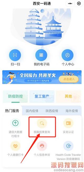 “一码通”用户可通过打开“西安市民一码通”小程序,进入“首页”- “热门服务”-“核酸结果查询”,查看核酸检测结果。
