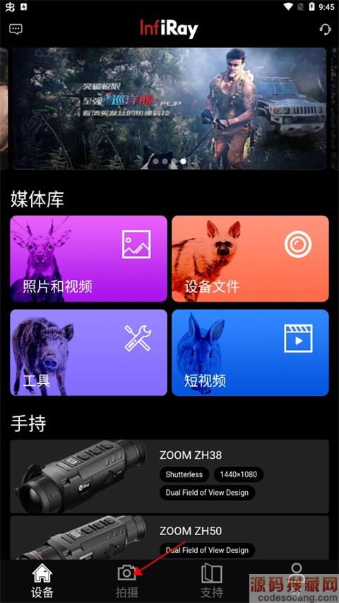 1、首先进入InfiRayOutdoor app,点击拍摄,软件主要通过连接无线网,对红外线的设备的成像、录像和远程访问;