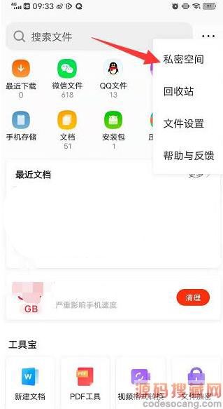 进入页面后,点击右上角三个点,选择私密空间。