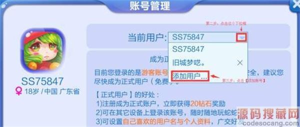 2、在账号管理界面中,我们可以看到当前账户的选项,点击下拉菜单后可以看到本地保存的账号,点击即可切换,也可以点击【添加用户】来登录其他账号。