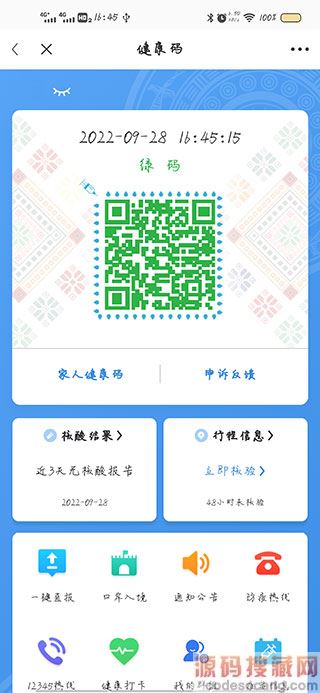 2、登录完成后,大家可以在首页找到健康码,查看自己的健康码检测时间。