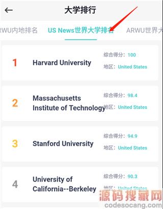 3、向左滑的话,可以选择看那种排行,比如us世界大学排行。