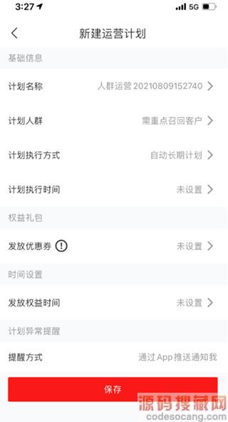 在人群运营列表页,点击右上角新建计划。填写基础信息,选择计划人群、计划执行方式、计划执行时间。设置优惠券权益,优惠券支持多选,每种优惠券最多发放10张。设置权益发放时间。全部设置好即可创建计划。