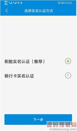 3、接着是选择认证模式,可选择“刷脸实名认证”或“银行卡实名认证”;