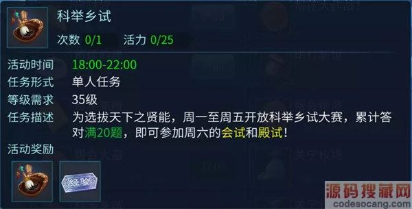 当升级到35级,可以参加科举乡试活动,考验小脑袋的时候到了!