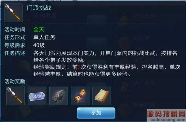 30级:一条龙+师门+帮派,这时候可以结婚了,30级时可以参加一条龙。把它和师门任务全部做满,这样升级比较快,但要注意护肝。如果你加入了帮派,还可以参加帮派里的行酒令、帮派大盗、联赛备战任务。行酒令和帮派大盗时间大概在晚7点左右,联赛备战全天可接。另外在这个等级,也可以找侠侣结婚了。