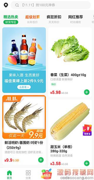 1、首先我们进入软件首页,在这里可以看到非常丰富的商品,我们通过搜索或者下滑浏览等方式找到我们想买的东西。