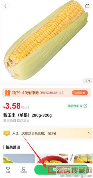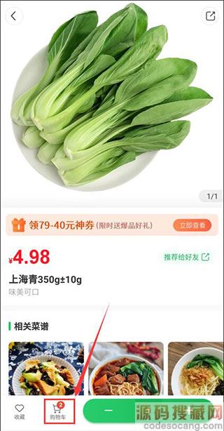 2、然后点进商品的详情页中,点击右下角绿色的加入购物车按钮后即可成功添加进购物车。