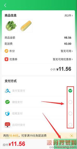 5、接着选定支付方式,最后点击去支付,输入支付密码即可成功购买东西。