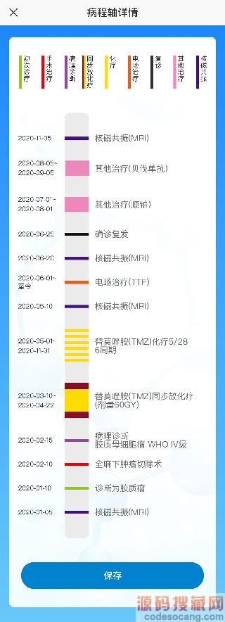 例如胶质瘤患者病历更可以一键生成病程轴,让患者的关键治疗信息一目了然。