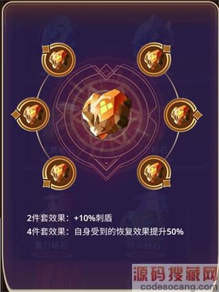4件套可以带心灵秘石,这样她就可以获得10%的刺盾和自身恢复效果提升50%的效果。
