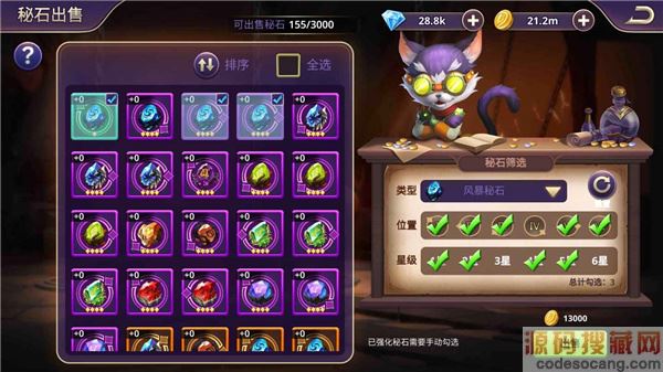 没用的秘石可以在秘石界面中点击出售,进行筛选,出售后可获得相应的金币。