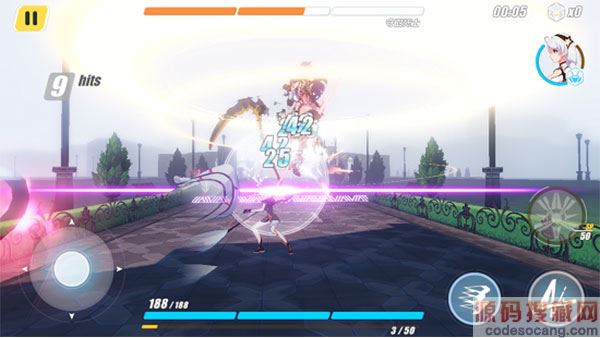 3、一切准备完毕后,我们就可以选择开战了!作为一款动作游戏,游戏的画面自然不用多说了,我们可以通过右上角切换角色。通过左侧虚拟摇杆进行人物的操控,在屏幕右侧有3个按钮,分别是闪躲,普通攻击以及释放技能,技能需要蓄力完成后可以释放。