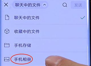 如果你要发送的视频内存特别大的话,你点击加号,就不要从相册里选了,我们左滑一步,找到这里的文件。