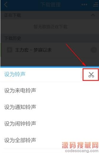 4、点击【选择铃声】旁的【剪刀】标志