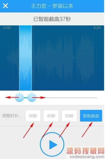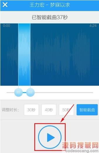 5、酷狗音乐已智能剪切歌曲高潮部分,你可以自己调整