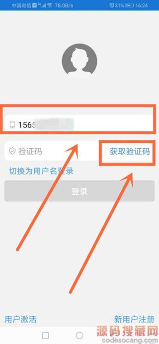 4、输入【要登录的手机号】,并点击【获取验证码】进入。