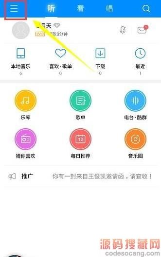 1、启动你的手机酷狗音乐,登陆你的账号,它支持微博、QQ和微信等账号的登录