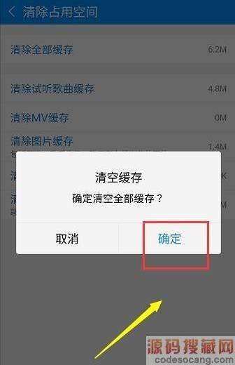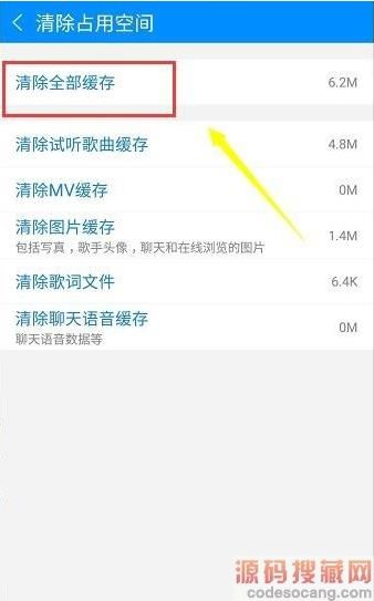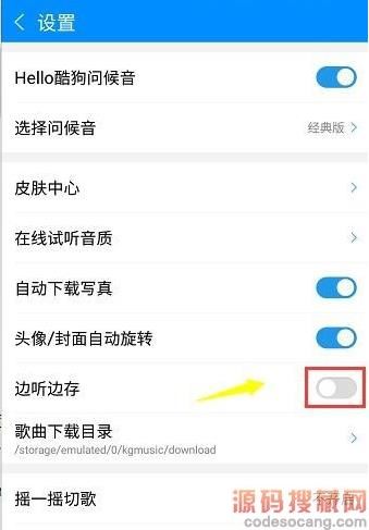 4、在设置界面先打开边听边存开关,然后点击清除缓存