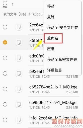 9、长按文件选中,点击右上角的三个白点,选择重命名