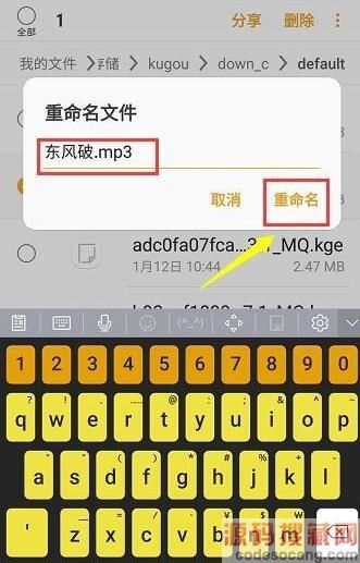10、改成你实际歌曲的名字,扩展名改为MP3,点击确认