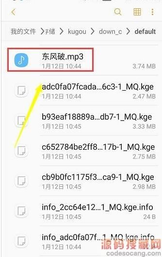 8、听完后,打开手机我的文件,依次存储中的Kugou——down_c——default,找到最大的一个文件
