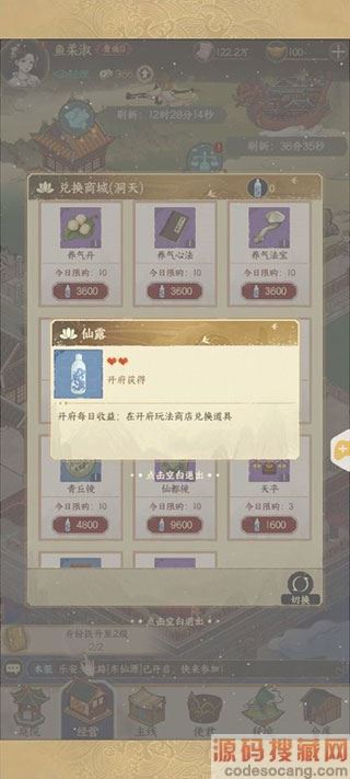 在兑换商店中,可以使用“仙露”道具兑换各种消耗道具。