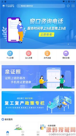 1、首先在本站下载软件之后进入首页,这里支持个人办事、法人办事、办件速度、预约办事等功能;