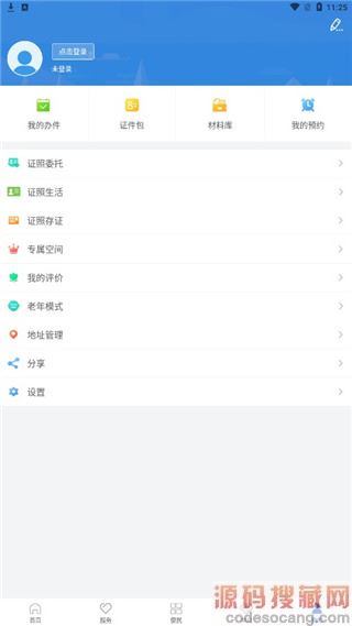 2、然后点击服务,用户可以根据所在地区进行办理;