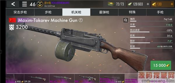 经过多个版本的洗礼,这把马克西姆托卡列夫机枪变成了黄金售卖,与其旁边的勃朗宁相比,性价比高出很多。110的默认伤害,45m最大射程,支援甲50%机枪伤害加成,可以让这把枪成为机枪中的佼佼者(MG34在射程瞄准方面是逊色于它的)。