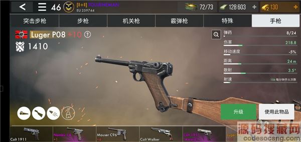 LugerP08是VE日更新的武器,当时不怎么起眼,现在版本成为了神器,满级伤害有230多左右,外加轻便的移速再配合狙击手手枪40%伤害加成,可以让这把武器能够在大佬的枪林弹雨间来回穿梭,是非常好的武器。