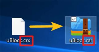 电脑版插件无法直接安装至 Yandex,先做一个小小的修改,以广告拦截插件 uBlock.crx为例:先将后缀名 .crx 改为 .zip 或者 .rar,然后解压(通常我会改为.zip,但这个插件改为.zip 解压时有报错,而.rar 则未出现)