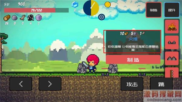 4、火堆是游戏中夜晚的照明和回血手段,不过有个缺点就是不能离开火堆,这样会影响资源的采集,所以一般建议在晚上杀怪的时候再建造火堆。