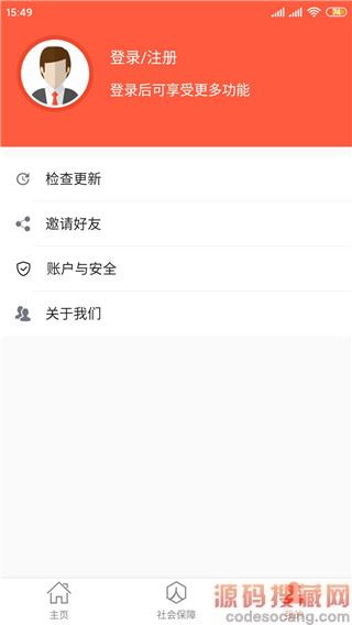 5、点击登录注册,可以登录app,检查更新,查看账户安全等