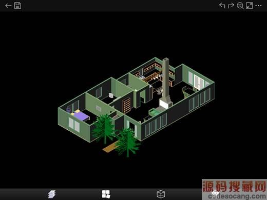 2、和二维的CAD看图王界面有点不一样,因为该软件检测到这是3D的图纸,直接切换到3D看图场景了,在3D模式下分别有:图层、布局、视角和视觉样式;