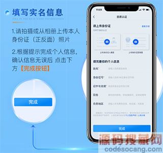 2、请拍摄或从相册上传本人身份证(正反面)照片,根据提示完成个人信息,确认信息无误后点击下方【完成按钮】。